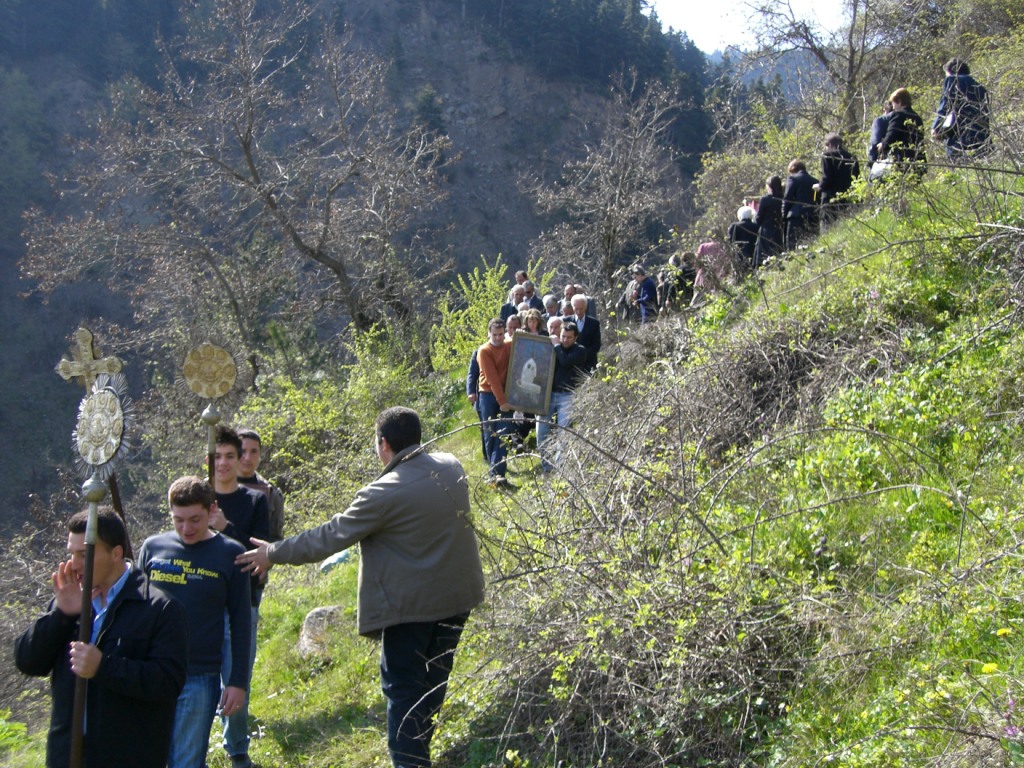 Κυριακή του Θωμά Μετά το πέρας της θείας λειτουργίας έγινε η περιφορά της εικόνας της Παναγίας σε δρόμους και σοκάκια του χωριού (Σίχνα).